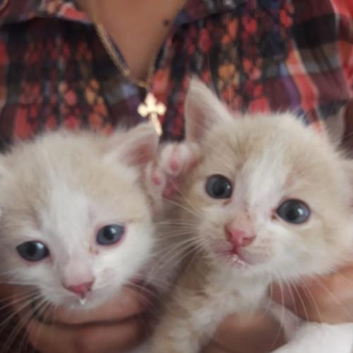 Отдам котиков только в добрые руки выкармливали сами 1,5-2 месяца.остались без мамы загрызли собаки.кушают.ходят в песок.спокойные и ласковые.87759559412